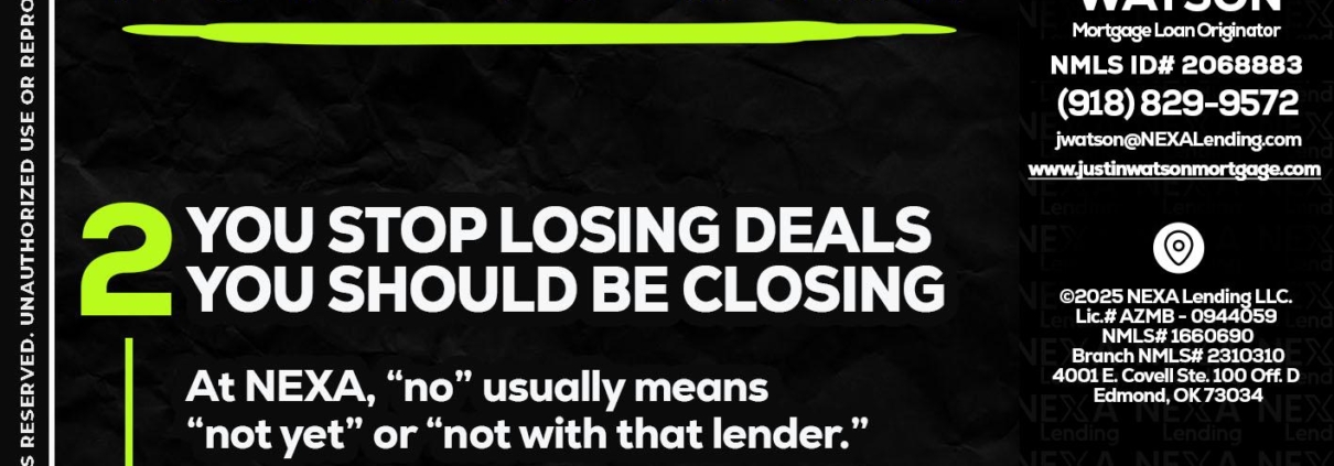 Hi, my name is Justin Watson. I’m a Loan Officer with NEXA Lending LLC., offering personalized mortgage solutions, fast customized quotes, great rates and service with integrity.