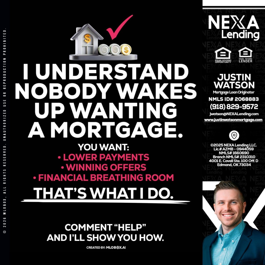 I UNDERSTAND - Justin Watson -Mortgage Loan OriginatorHi, my name is Justin Watson. I’m a Loan Officer with NEXA Lending LLC., offering personalized mortgage solutions, fast customized quotes, great rates and service with integrity.