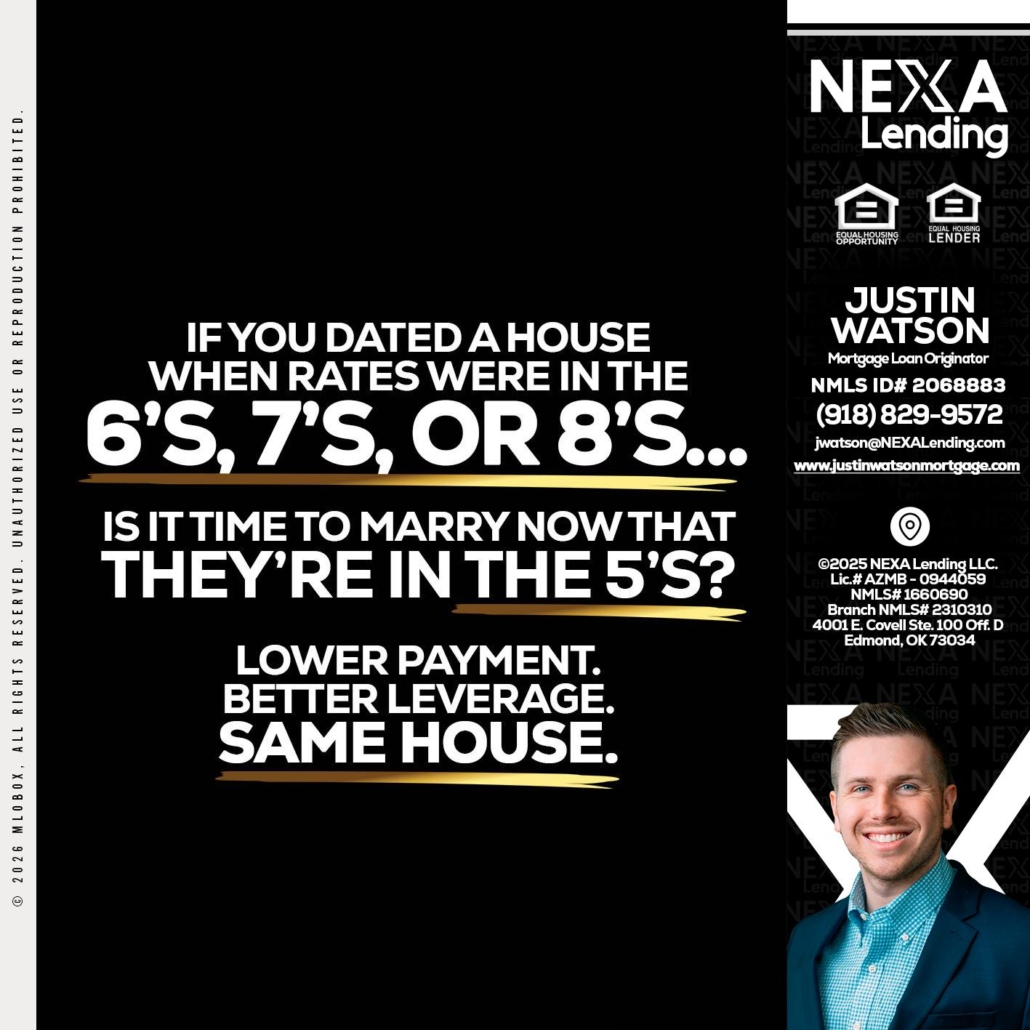 Hi, my name is Justin Watson. I’m a Loan Officer with NEXA Lending LLC., offering personalized mortgage solutions, fast customized quotes, great rates and service with integrity.