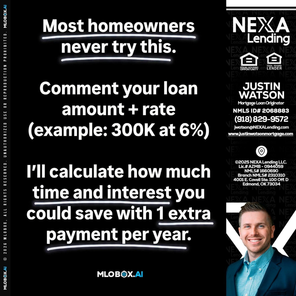 most owners - Justin Watson -Mortgage Loan OriginatorHi, my name is Justin Watson. I’m a Loan Officer with NEXA Lending LLC., offering personalized mortgage solutions, fast customized quotes, great rates and service with integrity.