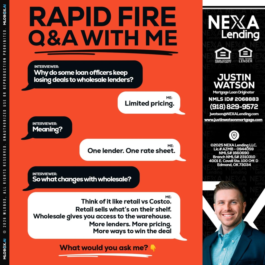 Hi, my name is Justin Watson. I’m a Loan Officer with NEXA Lending LLC., offering personalized mortgage solutions, fast customized quotes, great rates and service with integrity.