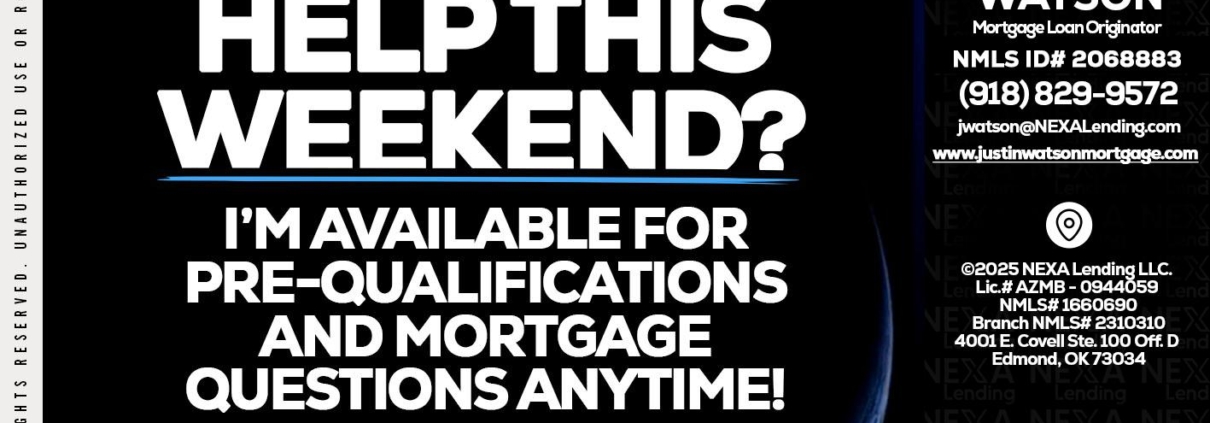 REAL ESTATE AGENTS - Justin Watson -Mortgage Loan OriginatorHi, my name is Justin Watson. I’m a Loan Officer with NEXA Lending LLC., offering personalized mortgage solutions, fast customized quotes, great rates and service with integrity.