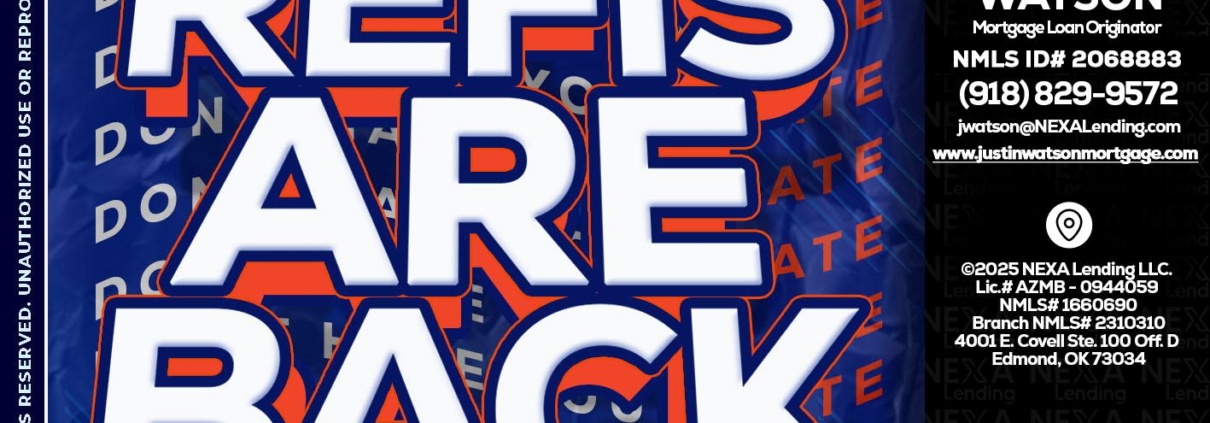 refis are back - Justin Watson -Mortgage Loan OriginatorHi, my name is Justin Watson. I’m a Loan Officer with NEXA Mortgage LLC., offering personalized mortgage solutions, fast customized quotes, great rates and service with integrity.
