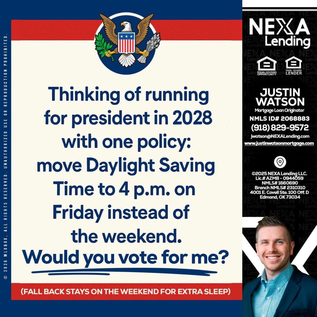 THINKING OF RUNING - Justin Watson -Mortgage Loan OriginatorHi, my name is Justin Watson. I’m a Loan Officer with NEXA Lending LLC., offering personalized mortgage solutions, fast customized quotes, great rates and service with integrity.