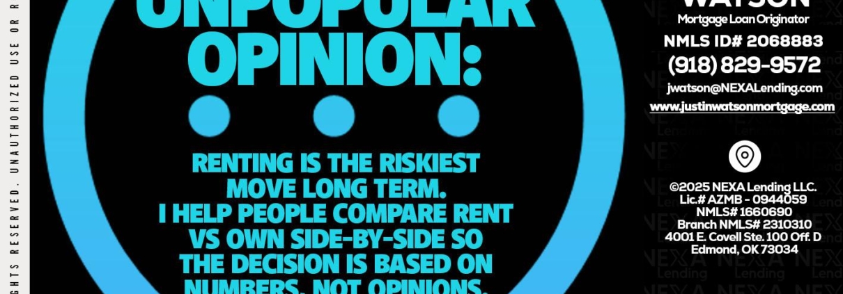 unpopular opinion - Justin Watson -Mortgage Loan OriginatorHi, my name is Justin Watson. I’m a Loan Officer with NEXA Lending LLC., offering personalized mortgage solutions, fast customized quotes, great rates and service with integrity.