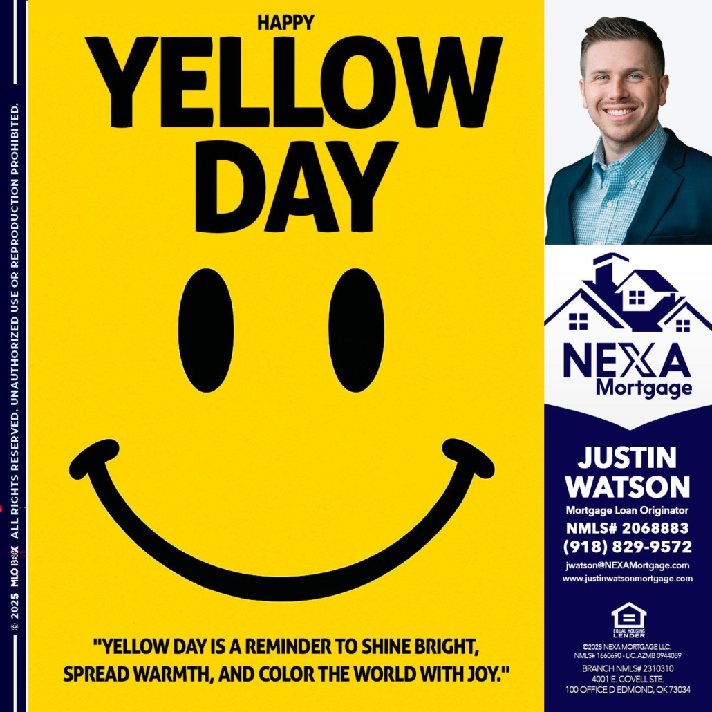YELLOW DAY - Justin Watson -Mortgage Loan OriginatorHi, my name is Justin Watson. I’m a Loan Officer with NEXA Mortgage LLC., offering personalized mortgage solutions, fast customized quotes, great rates and service with integrity.