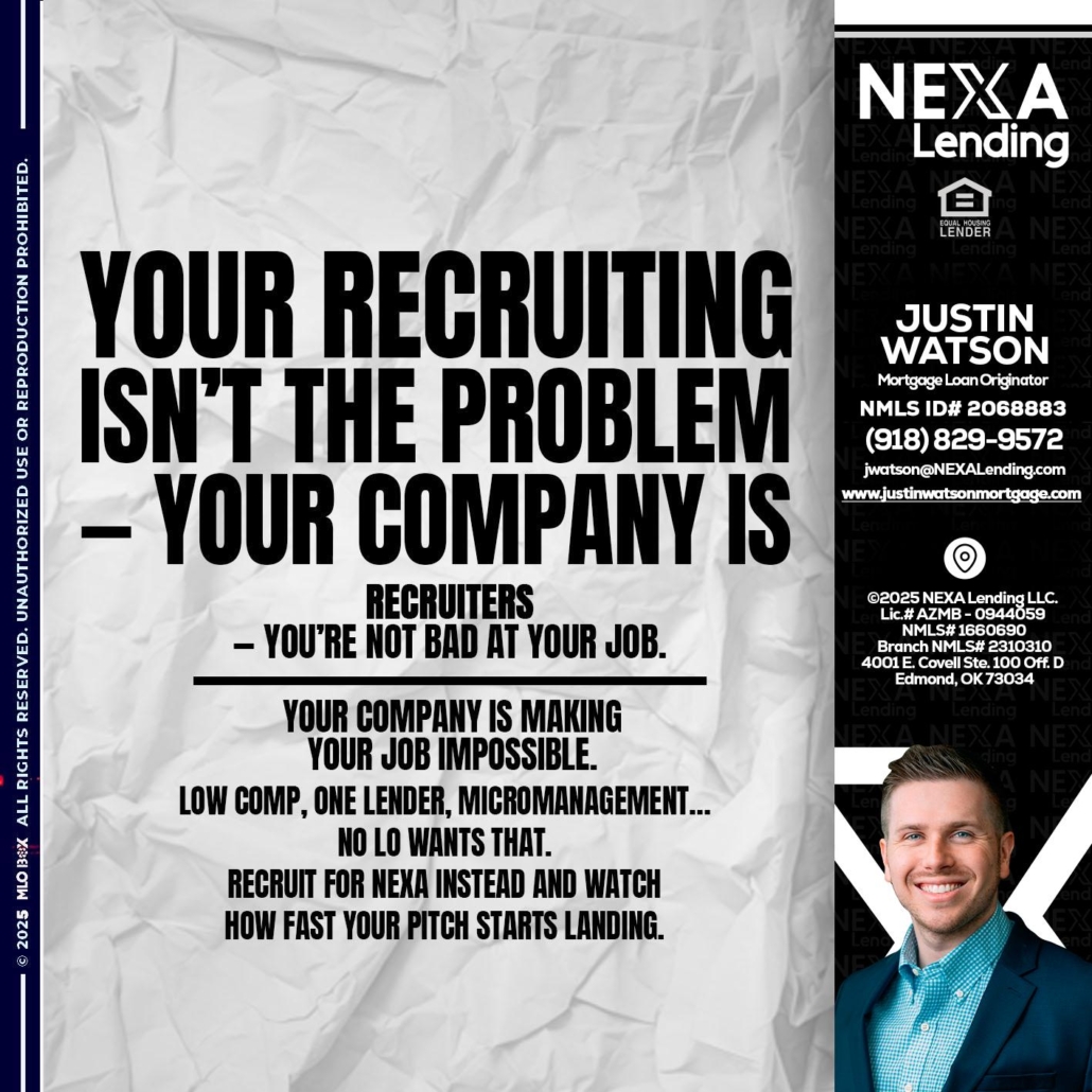 Hi, my name is Justin Watson. I’m a Loan Officer with NEXA Mortgage LLC., offering personalized mortgage solutions, fast customized quotes, great rates and service with integrity.